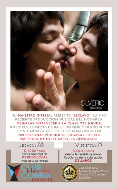 JUEVES: FIESTA DE SU MAJESTAD SILVERIO PRESENTANDO SU NUEVO MATERIAL "ESCLAVO"